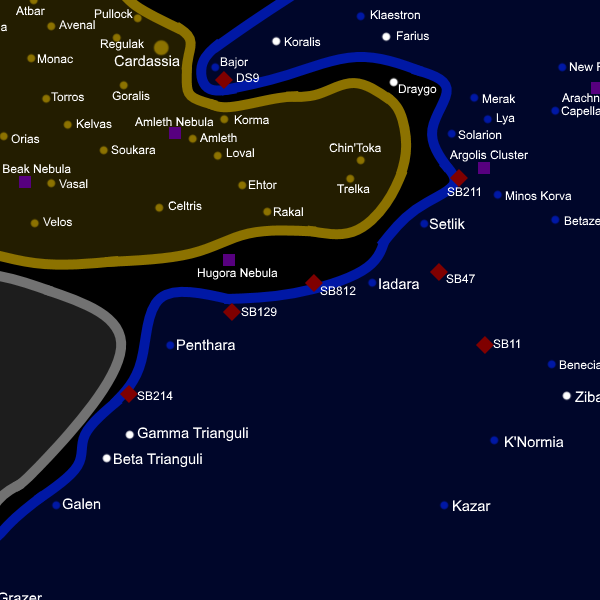 Stelvik Station (SB-812) is a Nor Class Space Station located in the Uvel System, which is located just outside Federation space. Prior to the Dominion War the Vulcan Science Ship Stelvik discovered the system. Before the system could be surveyed, however, the Dominion War broke out and the planned survey was put on hold. In 2377 Starfleet dispatched survey ships and were able to conduct a full survey.